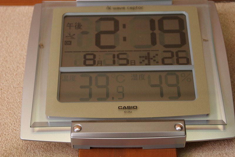 8月15日午後2時19分 39.9度!西日の当たる社務所の室温でした。